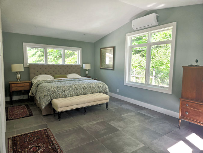 This one story home needed an update inside and out to reflect the clients fun and artistic personal style. We extended the living space and garage and created a new entrance with more windows and columns to add some character. A pop-up over the living area brings in natural light and further defines the new front entrance. We opened up the living space and specified a new location for the kitchen and dining. Salvaged doors on barn door hardware disguise the entrance to the basement and upstairs bedrooms. At the former garage location is now a large multi-functional work room with custom cabinetry.