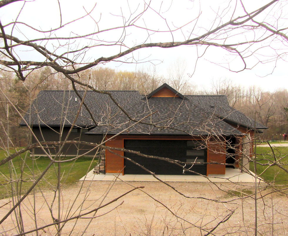 This client loved the comfort and warmth of traditional log cabin style cottages, but wanted something more modern for their house near Crystal Lake.